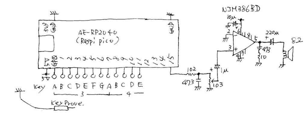 というわけで、目的曲の音階を発生するものをRaspi picoで製作し、少し練習することにした