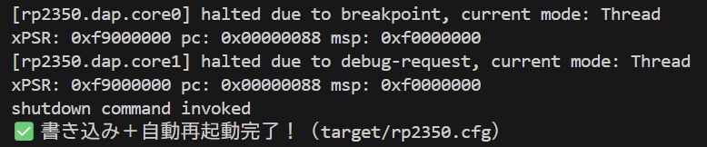 と打ち込むことで書き込み+自動再起動します。また、RP2040/RP2350は自動判別します